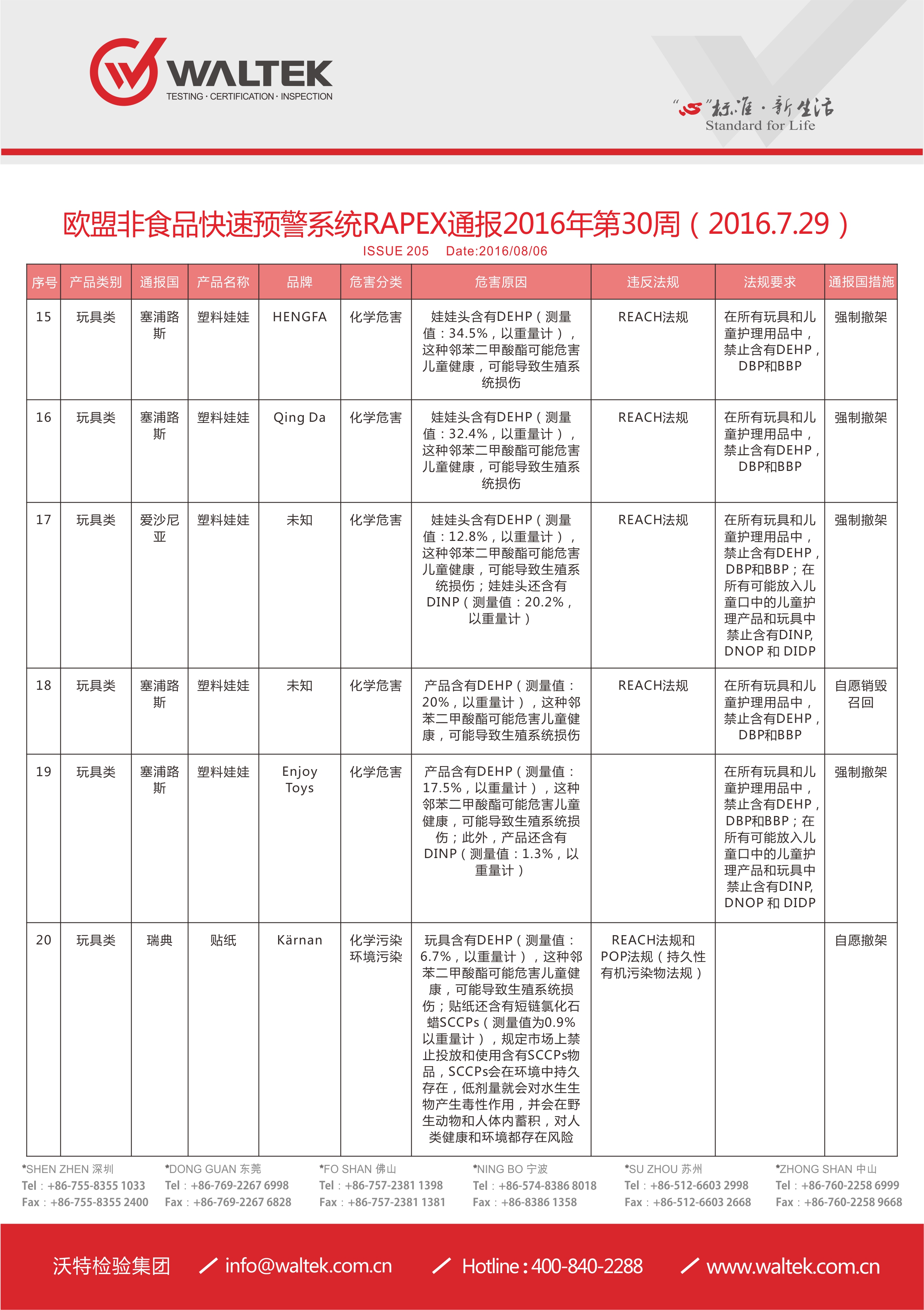 第205期 歐盟非食品快速預警系統(tǒng)RAPEX通報2016年第30周2