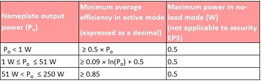 Table 2: Proposed MEPS for direct operation EPS (aligned with U.S. DOE Code of Federal Regulations (CFR) Title 10 Section 430.32)
