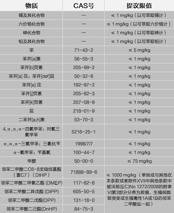 擬新增的限制物質(zhì)及其限值如下: