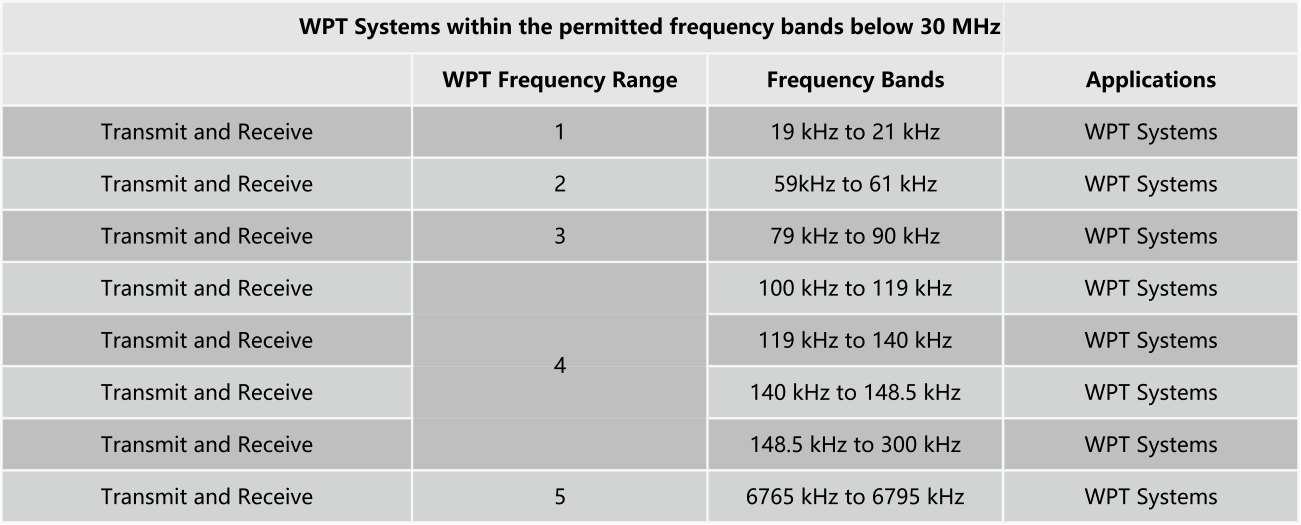 2、ETSI EN 303 417標(biāo)準(zhǔn)中無(wú)線充設(shè)備(WPT)允許使用頻率范圍:
