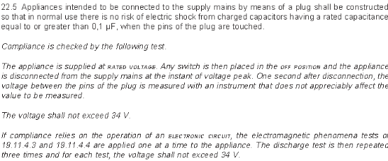 CSA60335-2-80要求電子式風(fēng)扇需要進(jìn)行插頭放電測(cè)試,要求是1秒內(nèi)電壓能降低到34V以下。