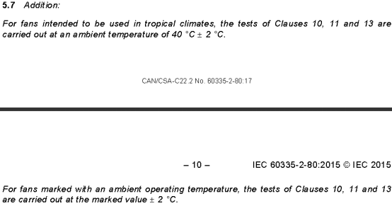 CSA60335-2-80要求如果風(fēng)扇使用環(huán)境在熱帶的話產(chǎn)品的label需要帶T,溫升測(cè)試需要按照T值作為環(huán)溫來進(jìn)行。