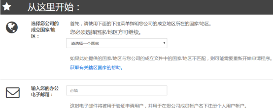 選擇國家,填寫注冊的郵箱。