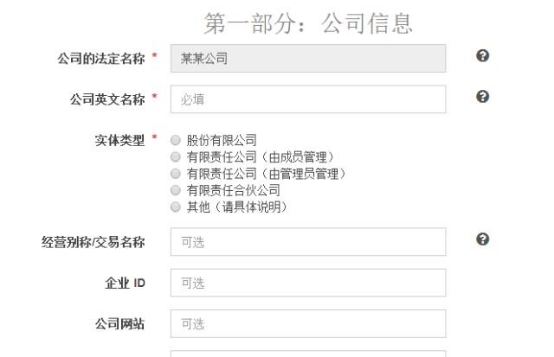 注意:以上選項除去公司法定名稱之外一律填寫英文!