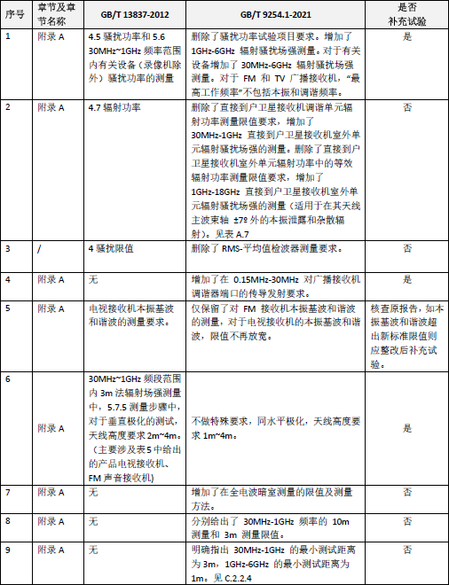 GB/T 9254.1-2021與GB/T 9254-2008的標準差異分析及補測建議詳見附件一。GB/T 9254.1-2021與GB/T 13837-2012的標準差異分析及補測建議詳見附件二。