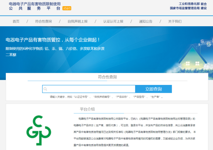 2019年10月8日,由工業(yè)和信息化部聯(lián)合國家市場監(jiān)督管理總局建設的電器電子產品有害物質限制使用公共服務平臺已上線并進行試運行。
