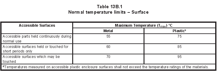 充電測(cè)試:用最大充電電壓給電池進(jìn)行充電, 充電電流不能超過最大充電電流或電路保護(hù)電流,直到熱穩(wěn)定或者電池充滿電其中一個(gè)現(xiàn)象出現(xiàn)并且不能超過下表的溫度限值。
