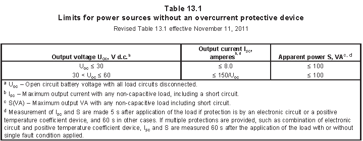 注:C5為電池滿電狀態(tài)下持續(xù)放電5小時(shí)后的電壓(按照廠家標(biāo)稱);另外測(cè)試過程需要失效過程保護(hù)裝置(除了符合UL1434或者UL60730-1A認(rèn)證的元件以外,因?yàn)闃?biāo)準(zhǔn)判定這兩個(gè)標(biāo)準(zhǔn)認(rèn)證的元件符合安全規(guī)范)。