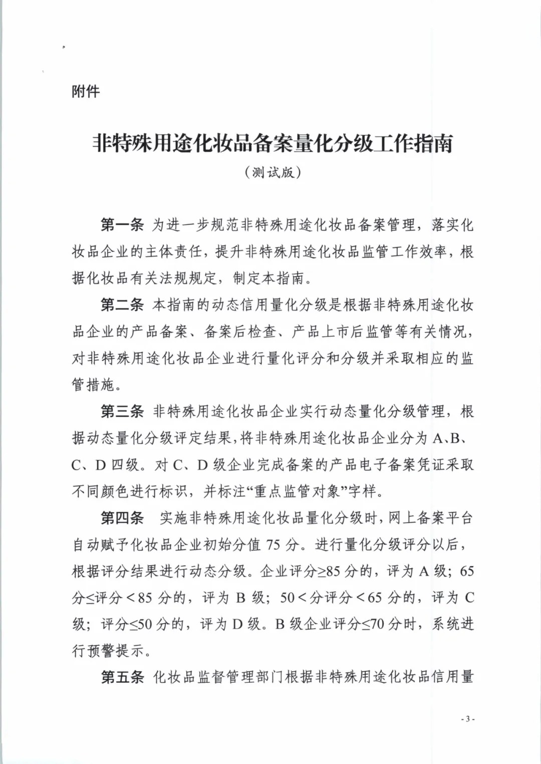 附:關(guān)于實(shí)施化妝品備案量化分級管理工作的通知