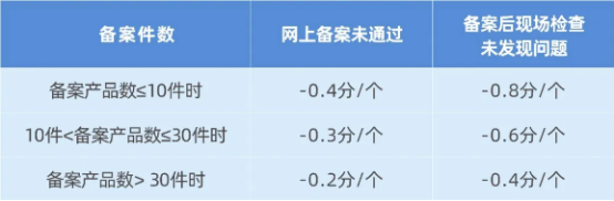 備案量化分級制度是指產(chǎn)品到網(wǎng)上備案,如果一次性通過,則加分;如果備案被退回,則減分。減分到一定程度,企業(yè)的網(wǎng)上備案信息變?yōu)榧t色,并被凍結(jié)賬號。
