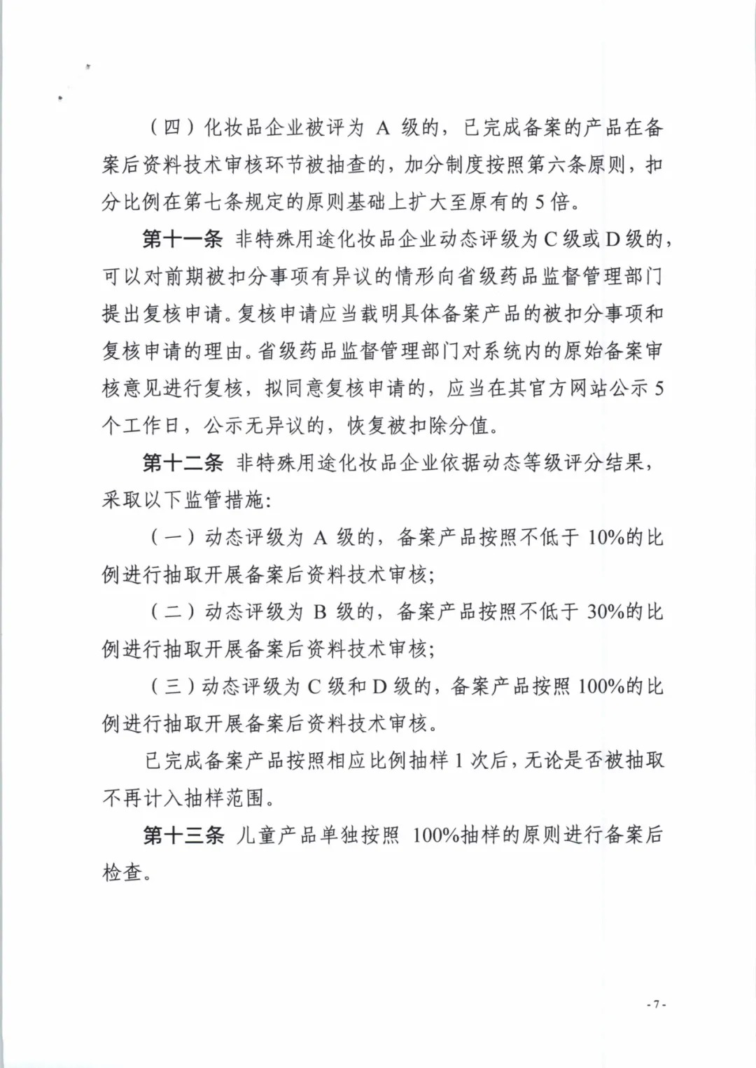 非特殊用途化妝品企業(yè)實(shí)行動態(tài)量化分級管理,將企業(yè)分為A、B、C、D四級。