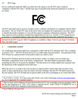 在第2.5章節(jié)中增加了關(guān)于獲取FCC標識插圖的說明,并增加了注釋12以澄清在FCC網(wǎng)站上的作品和47 CFR 2.1074規(guī)則中顯示的FCC標志之間以及一些的語法編輯風(fēng)格的細微差異。注釋解釋: 任何一種版本都可以與SDoC設(shè)備授權(quán)程序一起使用。