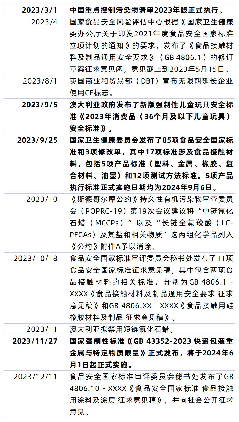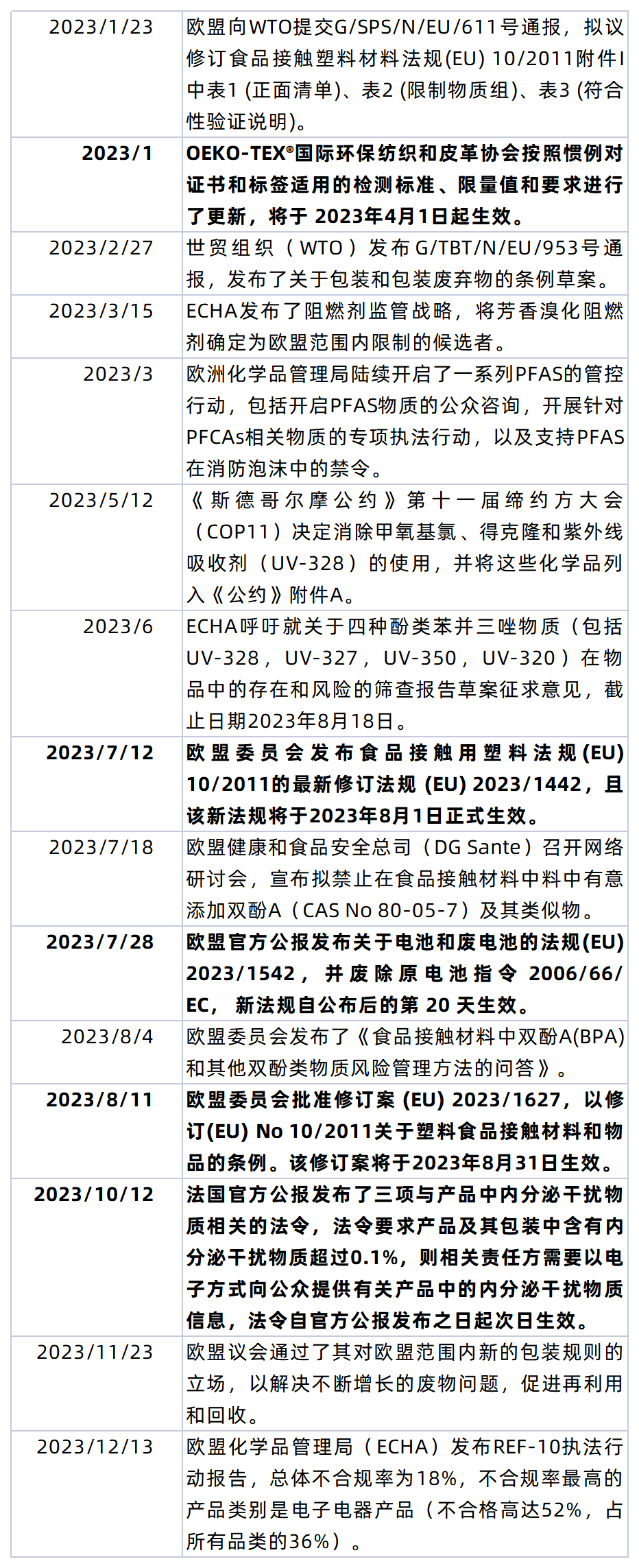 為幫各企業(yè)做好風(fēng)險管控降低違規(guī),下文整理了2023年全球重點環(huán)保法規(guī)的更新要點,包括RoHS、REACH、POPs等法規(guī)動態(tài)及各區(qū)域的法規(guī)動態(tài),黑色加粗字體為已生效重點,快來領(lǐng)取吧。