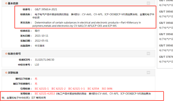 GB/T 39560系列測(cè)試標(biāo)準(zhǔn)都是等同采用的IEC 62321系列測(cè)試方法(見(jiàn)下圖),國(guó)家認(rèn)監(jiān)委此次公布并調(diào)整中國(guó)RoHS有害物質(zhì)的測(cè)試方法后,意味著中國(guó)RoHS將和國(guó)際正式接軌,大大的提高了RoHS檢測(cè)數(shù)據(jù)的通用性。