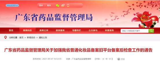 粵藥監(jiān)局發(fā)布公告:原化妝品備案平臺將于2021年9月15日關(guān)閉
