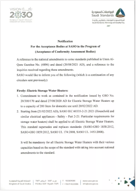 SASO-GSO1858:2012 SASO-GSO1859:2012 SASO UL 174:2008 SASO UL 1453:2008 |
