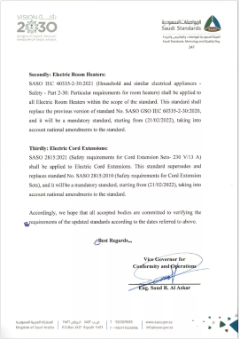 沙特SASO發(fā)布熱水器、電暖器、電源線產(chǎn)品的最新標準