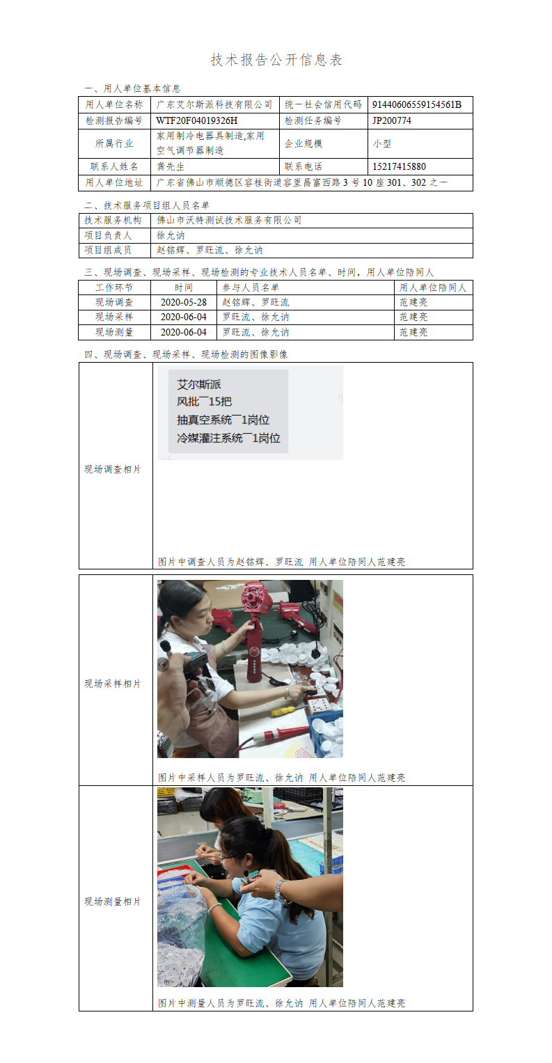 職業(yè)衛(wèi)生技術(shù)報(bào)告公示