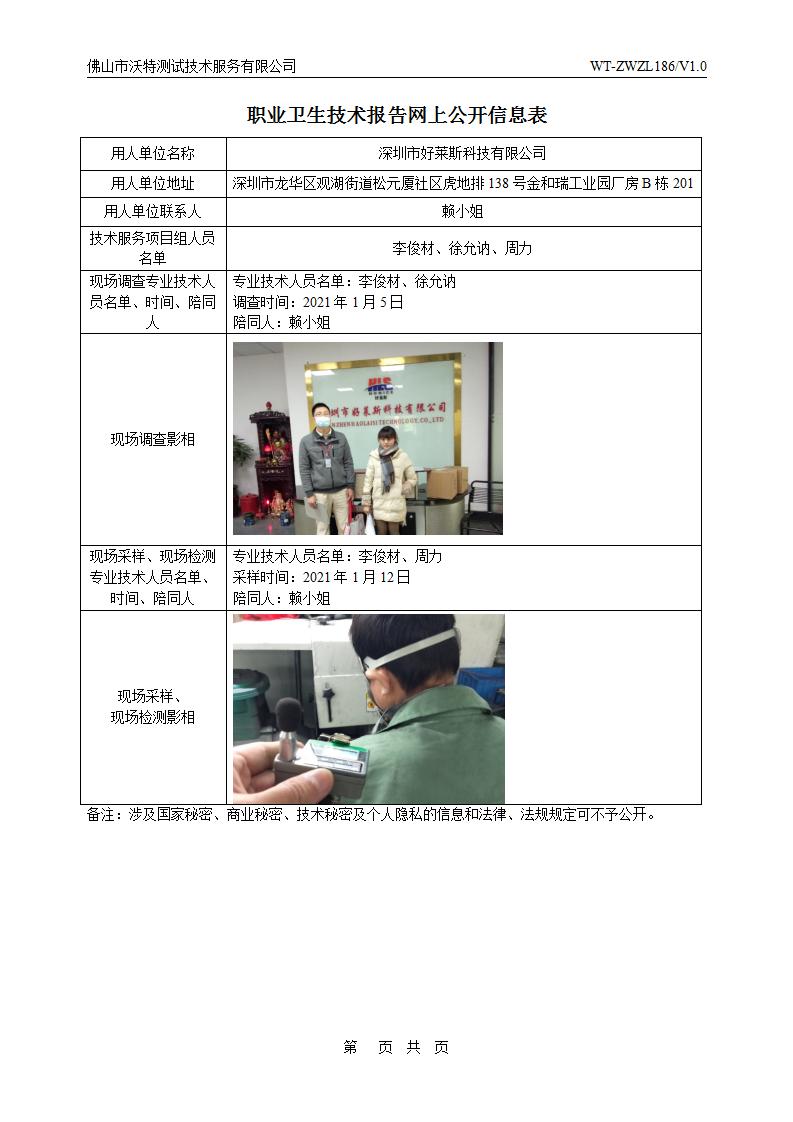 深圳市好萊斯科技有限公司 2021 公示信息