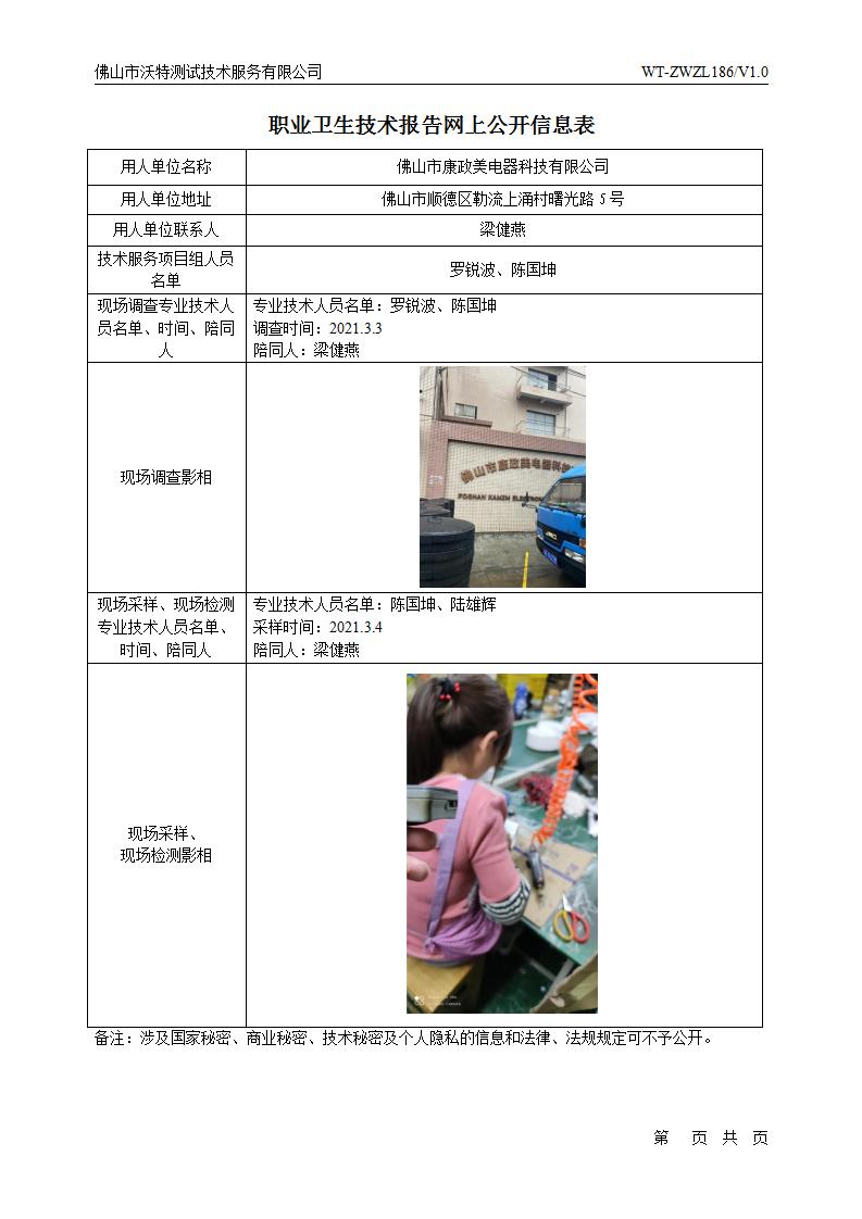 佛山市康政美電器科技有限公司 2021年3月報(bào)告