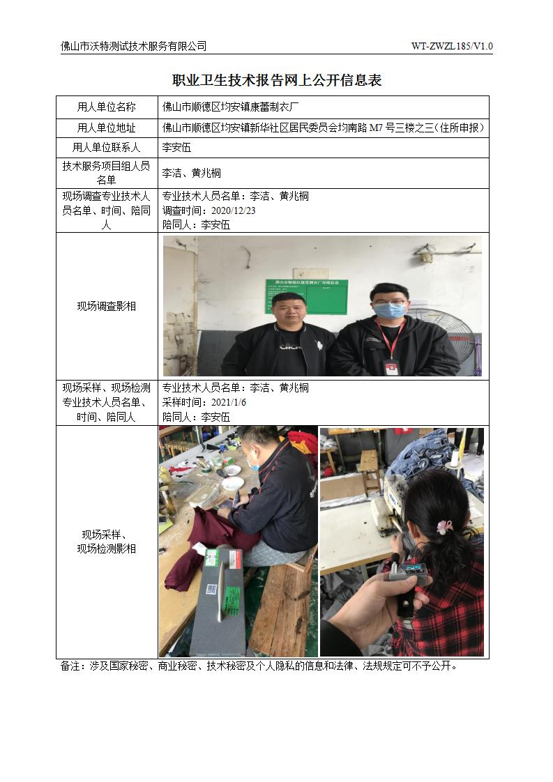 佛山市順德區(qū)均安鎮(zhèn)康蕾制衣廠 網(wǎng)上公開(kāi)信息表
