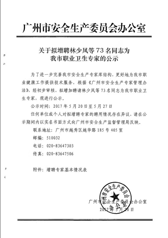 近日,沃特在職業(yè)衛(wèi)生檢測領(lǐng)域再次獲得重大突破以及高度的政府評價!沃特謝家寬和魏遠(yuǎn)馴高級資深工程師(見下圖第10&11)獲得廣州市安全生產(chǎn)監(jiān)督管理局下屬安全生產(chǎn)委員會聘請職業(yè)衛(wèi)生專家的榮譽(yù)稱號!