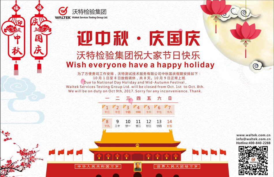 2017年沃特檢驗(yàn)集團(tuán)國(guó)慶放假通知