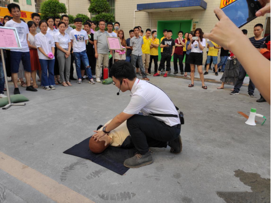 逃生演習結(jié)束后,指揮員和沃特消防培訓講師分別對“如何使用滅火器材撲滅不同類型的火情”以及“如何通過心肺復蘇搶救因吸入濃煙休克的傷員”進行了詳細而專業(yè)的講解和示范,并現(xiàn)場邀請企業(yè)代表們上前演示。