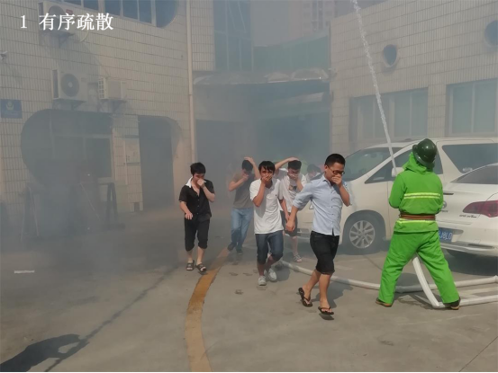l 當聽到警報聲,事故樓層內的人員在疏散組的引導下,用濕毛巾捂住口鼻,彎著腰,緊張有秩序地從安全路線撤離,向安全區(qū)域集中;
