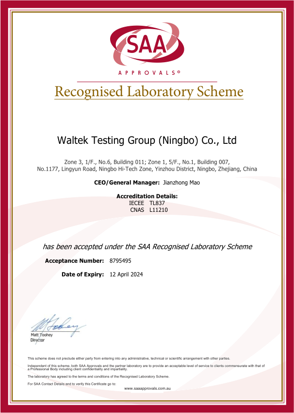 沃特檢驗集團寧波公司被正式列入澳洲SAA Approvals官方認可實驗室體系