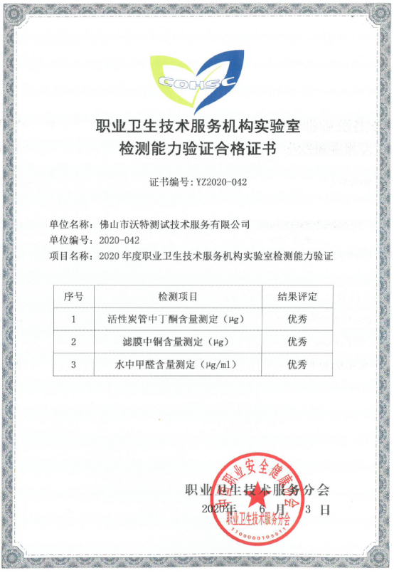 佛山沃特參加職業(yè)衛(wèi)生類與食品類兩項(xiàng)能力驗(yàn)證獲得滿意結(jié)果