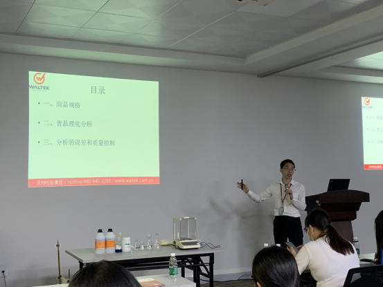 隨后下午,檢測專家針對食品理化指標的含義、重要性、測定方法及標準、誤差分析和質(zhì)量控制等內(nèi)容繼續(xù)展開培訓,并帶領學員們參觀了佛山沃特的食品實驗室,通過現(xiàn)場演示食品檢測技術的具體操作,加強學員們對食品檢測的深度理解。