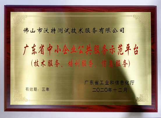 經(jīng)廣東省地市主管部門和省有關(guān)單位推薦、專家評審、現(xiàn)場考察和公示等程序,佛山市沃特測試技術(shù)服務(wù)有限公司于2020年獲批“廣東省中小企業(yè)公共服務(wù)示范平臺”(技術(shù)服務(wù),培訓(xùn)服務(wù),信息服務(wù)),并于近日獲頒證書和牌匾。